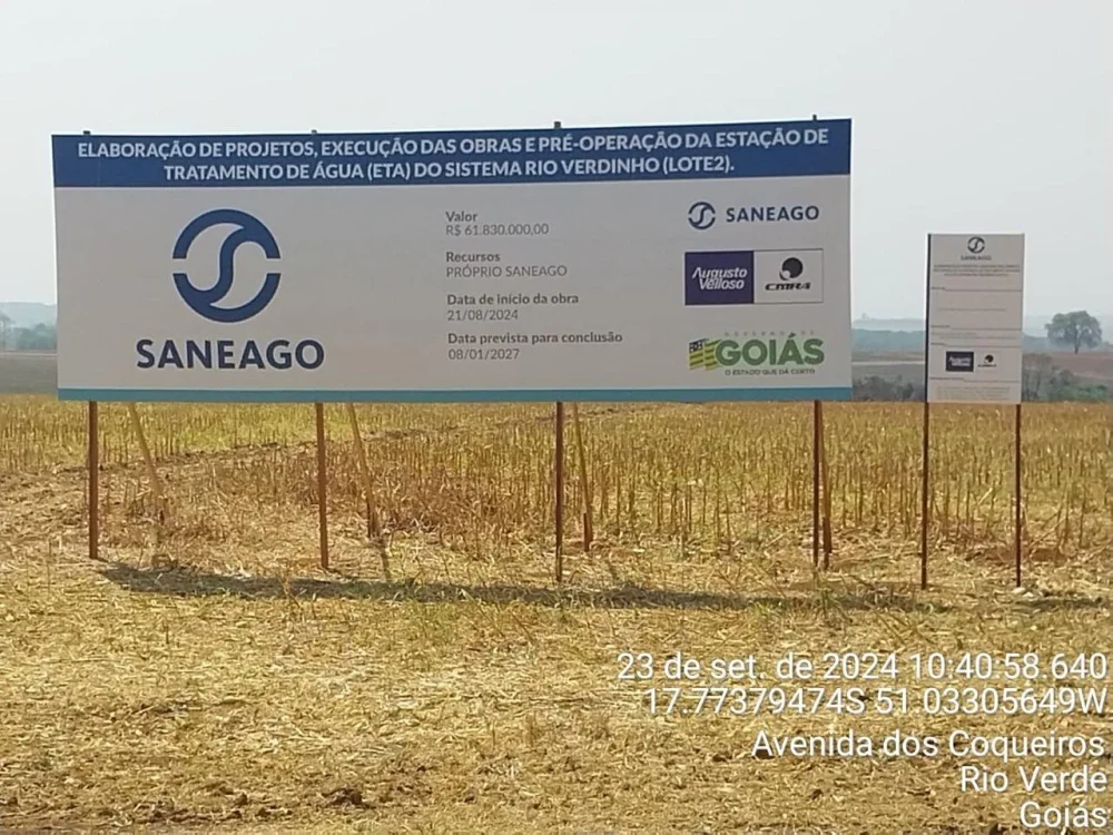 Objeto:Contratação semi-integrada de obras e serviços de engenharia relativos à implantação do Sistema Rio Verdinho (Lote 1), com a execução da captação, estação elevatória (EEAB) e adutora de água bruta (AAB), na cidade de Rio Verde, estado de Goiás.